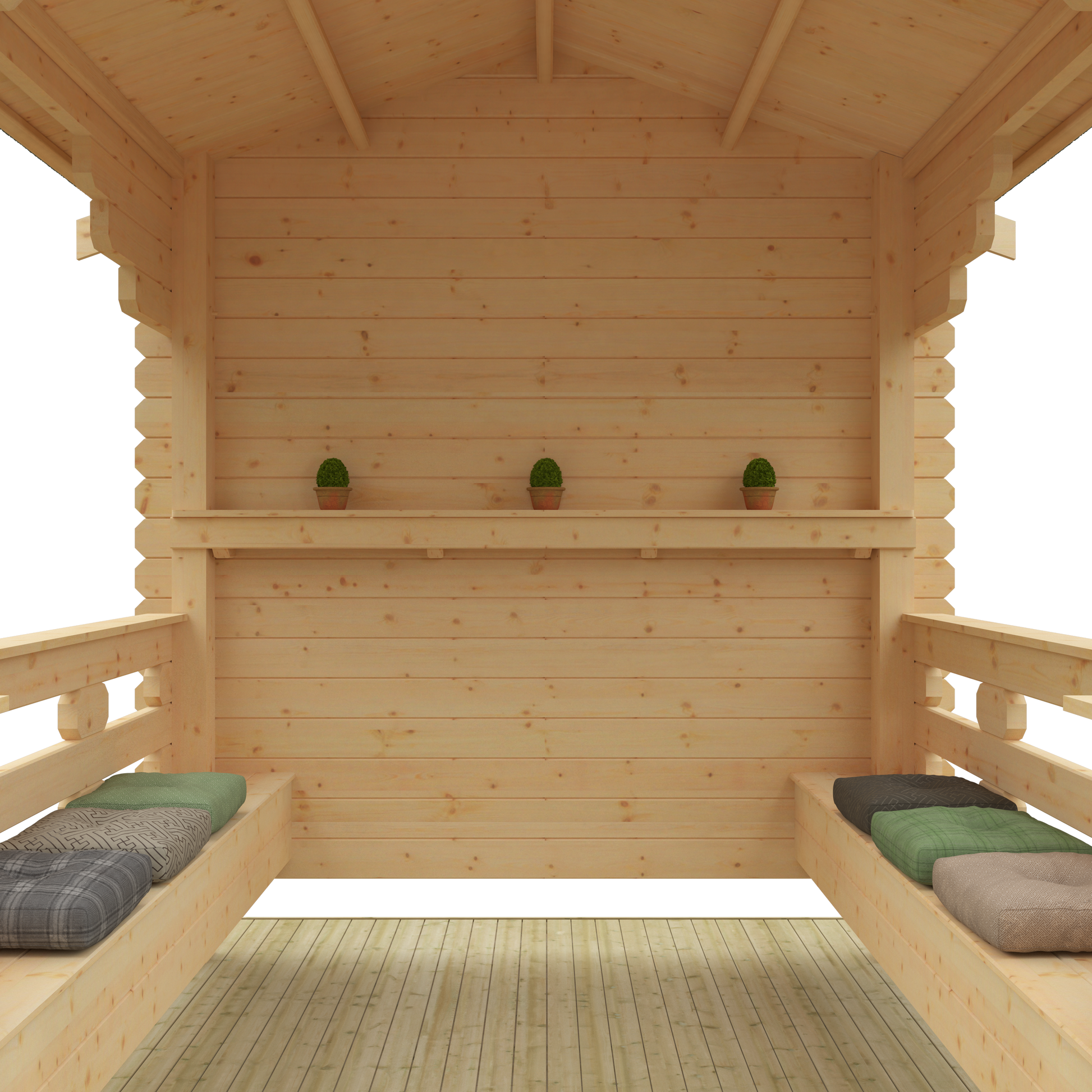 Whether it’s for a pub, a park or just a private garden the Garden Shelter is the ideal building for people to sit, relax, congregate and enjoy themselves. It’s constructed from the finest quality 44mm interlocking logs and comes feature packed with two integral heavy duty bench seats and an in-built wall shelf. It has also been manufactured to satisfy the legal requirements for use as an outdoor smoking shelter.